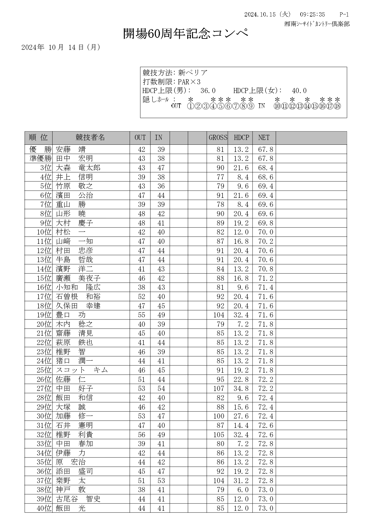 2024年10月14日 開場60周年記念コンペ