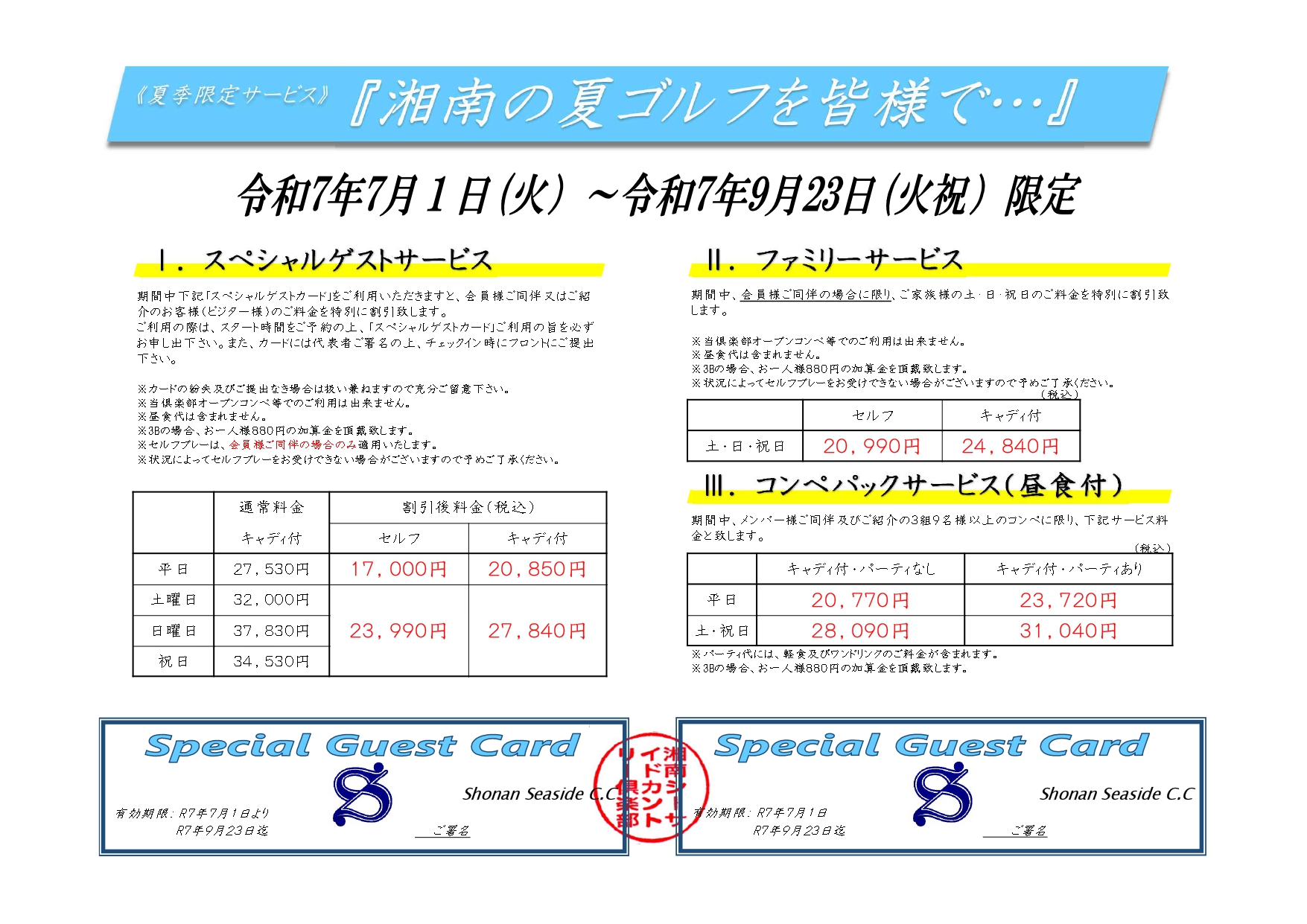 夏のお得なプラン
