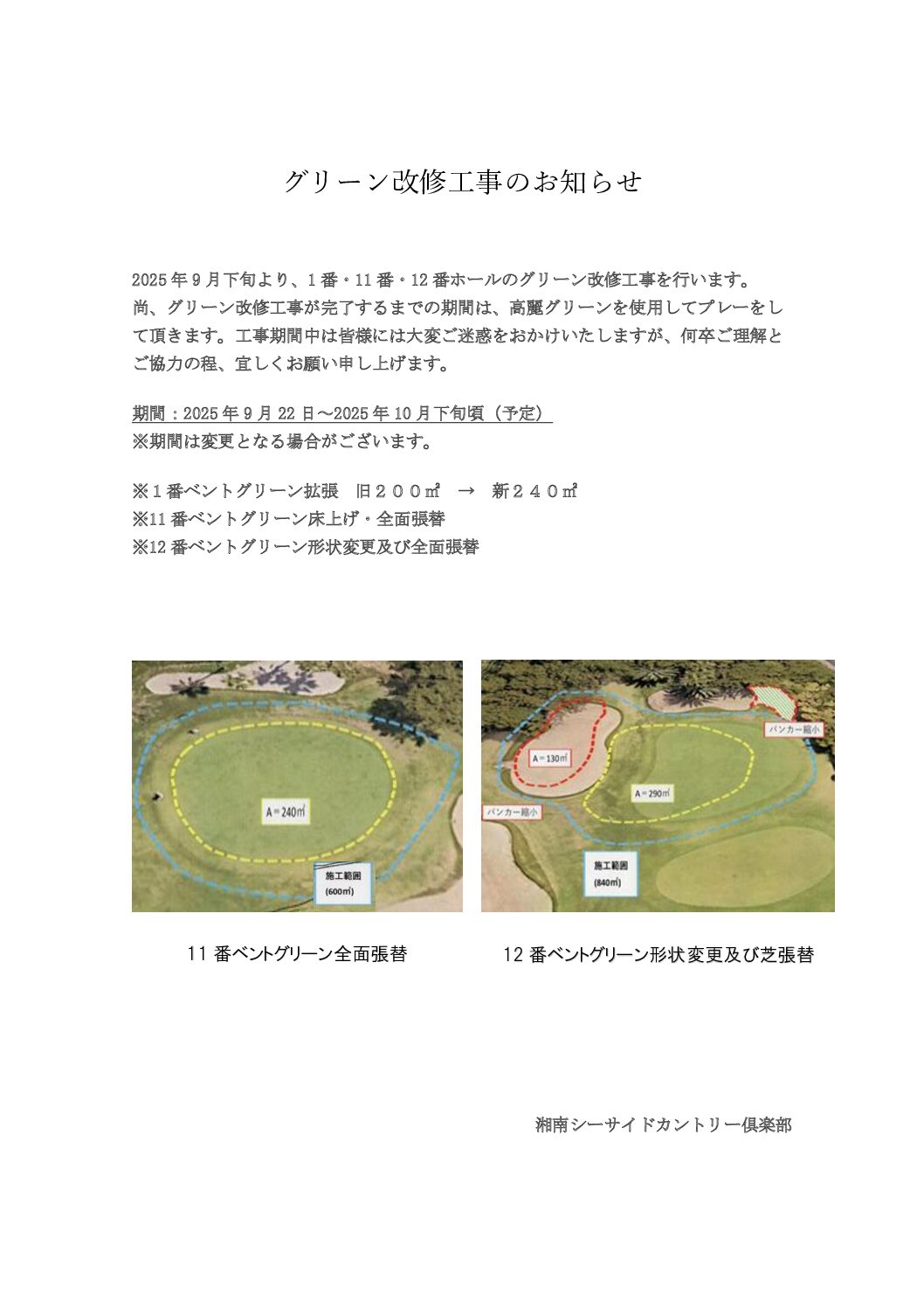 グリーン工事のお知らせ